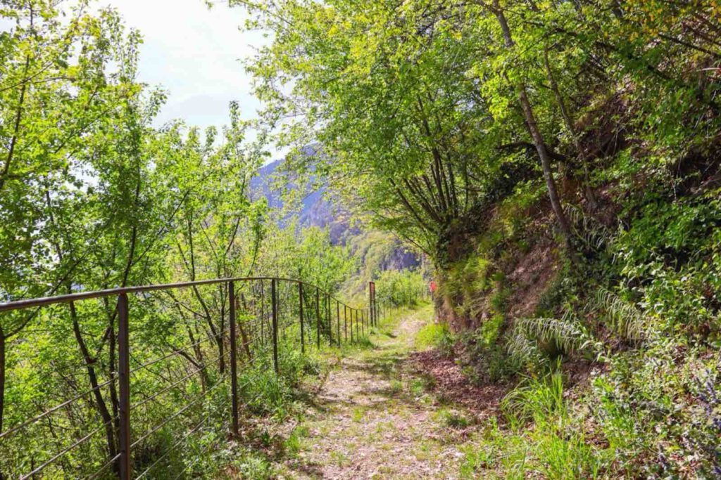 Schon starten wir in die Wanderung und uns eröffnet sich direkt ein tolles Panorama. Ich musste direkt an die Toskana denken. Irgendwie hat diese Wanderung eine gewisse Ähnlichkeit zu der Wanderung, die wir erst in er Toskana gemacht hatten. Ihr blickt auf ganz viel grün, auf die Weinberge, Zypressen und im Hintergrund auf die Berge: